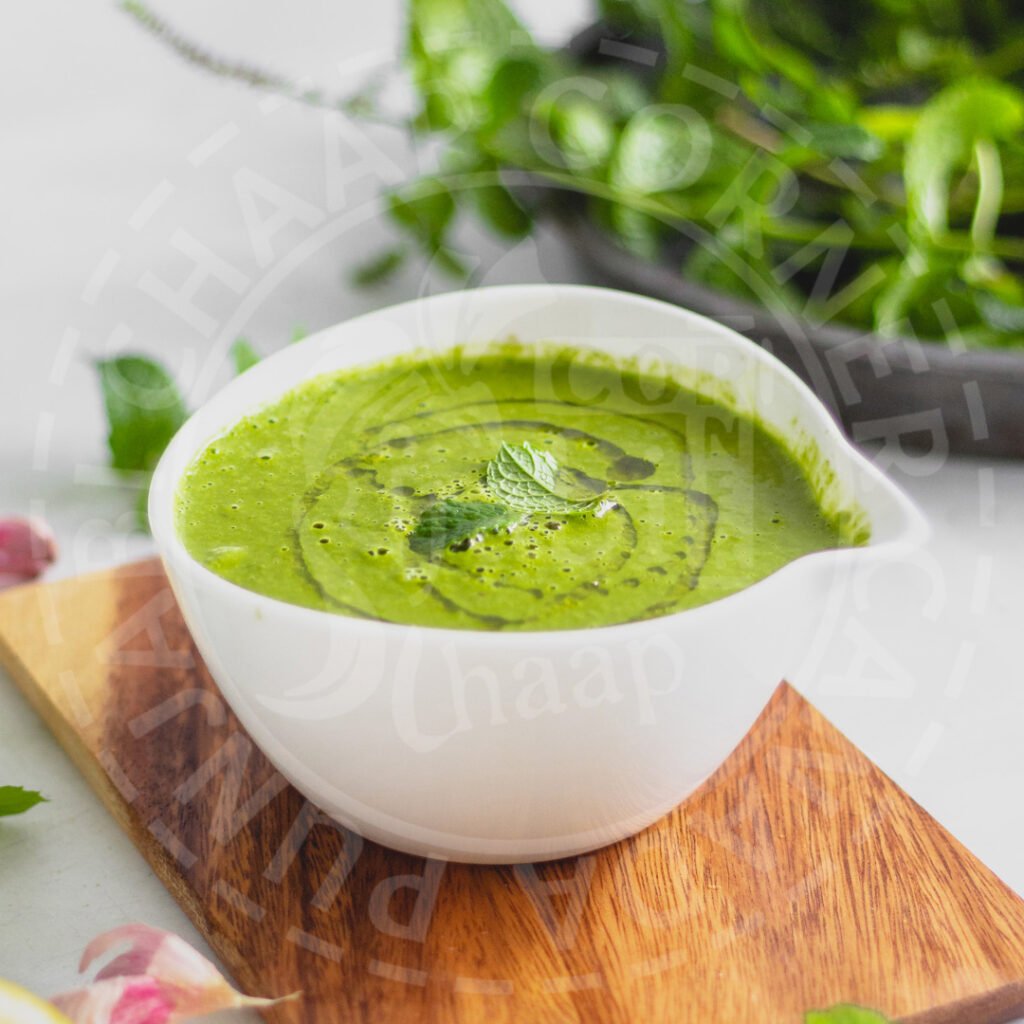 A harmonious combination of freshly picked garden mint leaves and coriander, blended with yogurt and enhanced with a medley of aromatic spices packaged in a small box.