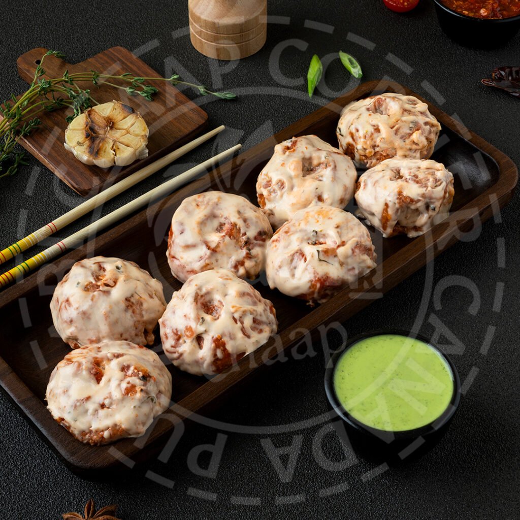 Tandoor grilled momo stuffed with a choice of cheese corn or paneer or lightly spiced veggies inside tossed with heavenly dollop of cream and seasoned with oregano. Served with mint sauce.