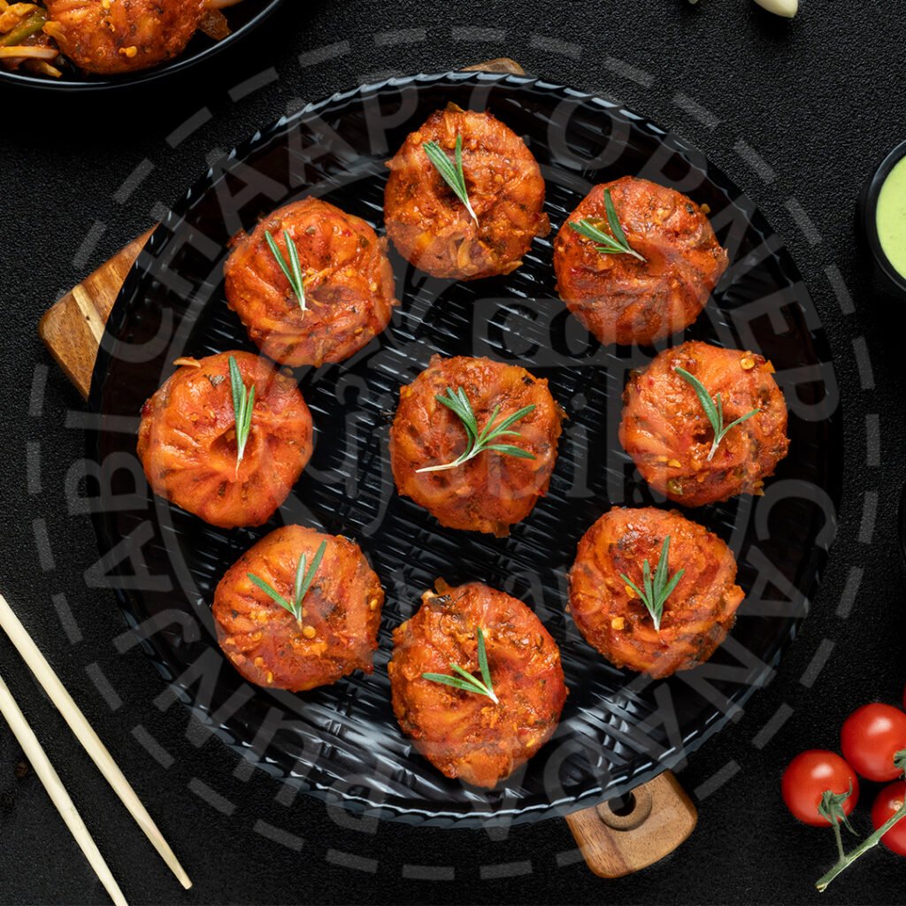 Tandoor marinated momos, sauteed in a tangy and bold tandoori sauce , filled with paneer inside. Garnished with oregano and served with mint sauce.