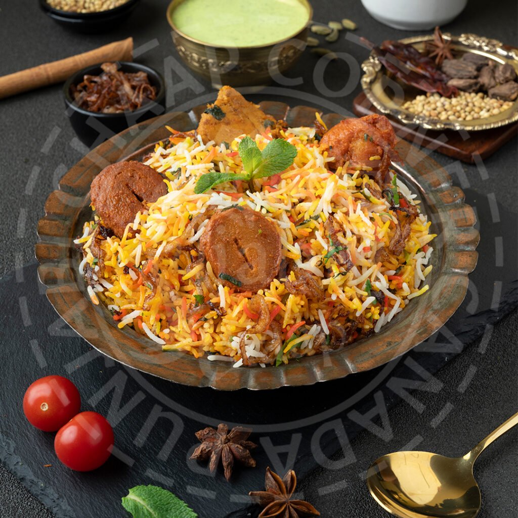 Chaap BiryaniFragrant basmati rice cooked with succulent soy chaap, aromatic spices, and a burst of flavors.