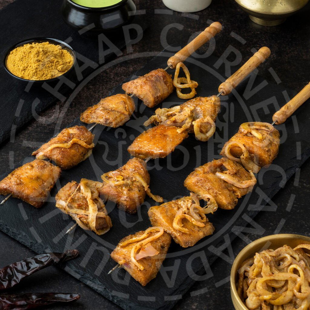 Chatpata ChaapGrilled cubes of Soya Chaap marinated with selected Indian spices and tossed with onions. Served with mint sauce.