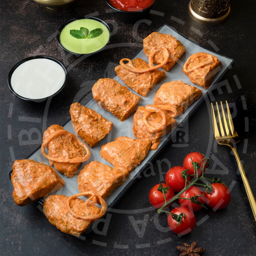 Grilled cubes of soya chaap tossed with onions and marinated in a heavenly tangy sauce with cream to give the true Amritsari flavor. Served with mint sauce.